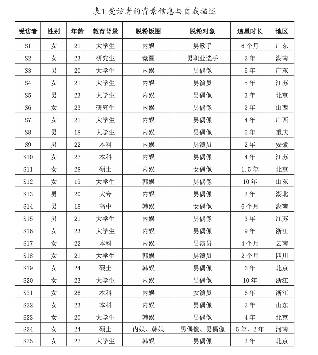 王诗萁,中国人民大学新闻学院博士后。 刘海龙,中国人民大学新闻学院教授。 摘要 近年来,偶像失格或失德情况频发,引发了饭圈中粉丝的“脱粉”现象。然而,偶像的负面言行并非粉丝切断情感链接并脱离饭圈的单一情景。研究发现,“脱粉”涉及粉丝个体对偶像超凡能力的认可终止,揭示了粉丝—偶像关系中偶像魅力的悖论:偶像魅力始于粉丝摆脱平庸日常的潜在热情,但又需要通过嵌入饭圈或平台中的秩序规范与消费惯例得以存续。本文的研究发现有助于进一步理解弹性的粉丝—偶像关系以及粉丝如何协商参与式文化中的集体价值认同。 关键词 粉丝“脱粉”;偶像魅力的悖论;粉丝—偶像关系;多重社会关系 一、引言 2023年8月初,国内社交媒体平台上出现了有关某韩国男子组合成员的恋爱传闻,部分中国粉丝在要求偶像对此进行表态而得不到回应后,自发组织租赁若干辆带有显示大屏的卡车,停靠在偶像所属的韩国某经纪公司办公楼下。卡车屏幕上滚动播放“炫耀恋爱”“无视职业道德”“践踏粉丝真心”等文字,宣告偶像不应秘密恋爱欺骗粉丝,并以冷处理的方式无视粉丝诉求。一些继续支持该偶像的粉丝质疑停靠卡车这一行为方式并不合理,是在公共场合“霸凌”偶像。面对默不作声的偶像及其经纪公司,粉丝之间基于发声的正当性各执一词。尽管“维权”粉丝反驳,这是“饭圈”在“利用舆论”对其他粉丝“捂嘴”,是“溺爱”偶像并帮助其推卸责任的行为,他们随后也迫于压力,取消了下一步将“维权宣言”投放至韩国各大地铁站大屏的计划。 随着社交媒体的发展,数字“饭圈”情境下的粉丝劳动带动了娱乐产业中的流量经济,偶像明星(以下统称为“偶像”)的受欢迎程度和商业价值也通过观看量、转评赞、购买量等粉丝数据直观体现出来(胡泳、刘纯懿,2021)。在偶像为粉丝提供日常乐趣和幻想陪伴等情绪价值的同时,粉丝并非简单的消费者和接受者,他们往往会为偶像保留忠诚与热情,参与“饭圈”活动,并通过投入时间、金钱和情感构建粉丝身份(Wohlfeil,2018)。然而,当偶像因缺乏职业素养或不具备道德操守等原因失去魅力后,“饭圈”内部既会有粉丝继续相信偶像并出面维护,也有粉丝主动切断情感链接并告别“饭圈”。尽管已有学者指出,偶像“塌房”后的粉丝“脱粉”意味着粉丝选择以理性逻辑克制情感依恋(胡静凝,2022),然而,此类发现仍局限于粉丝“脱粉”现象本身,并未对这一现象背后弹性的粉丝—偶像关系进行深入思考。 当前学界基于粉丝文化以及数字时代下的粉丝经济、情感劳动、圈层化等方面的研究已不少,其中对粉丝主体性与能动性的探讨一方面涉及个体通过挪用或“盗猎”积极参与对媒介文本的意义重构,进而发展为粉丝以“饭圈”集体的形式从文化消费跨入公共领域(Jenkins,1992;Jenkins et al.,2016);另一方面,也有学者指出,网络空间中的参与式文化不能将粉丝行动局限在积极正向的参与,还应当注意到粉丝群体之间互相攻击、举报等负面、不理智的情感交流(秦璇、陈曦,2021:54)。然而,目前仍少有研究关注粉丝身份的自我协商如何服从或叛离参与式文化中的集体价值认同。具体而言,偶像的道德或职业水准是否为粉丝审视粉丝—偶像关系的单一情景?粉丝如何权衡个人情感与社会规范之间的矛盾?粉丝对自我身份的认识如何受到其他粉丝、“饭圈”、平台等结构性因素的影响?聚焦粉丝—偶像关系的形成与破裂,本研究通过回顾魅力、“拟社会关系”以及“多重社会关系”等概念,提出从“偶像魅力的悖论”这一理论视角,分析“饭圈”文化中粉丝—偶像关系的内在逻辑与影响因素,并希望为进一步理解“饭圈”这一纵横在私人与公共领域的社会文化现象对粉丝行动的影响提供新的发现。 二、文献综述 魅力(charisma)一词最早是由马克斯·韦伯从宗教文化词汇引入社会、政治、经济等领域的学术概念。具体而言,韦伯将魅力解释为:“能够使个体区分于普通人的非凡品质,从而使其被追随者认可为具有超自然的、超人的或至少是(有)特殊能力的”(Weber,1947:329)。基于韦伯对三种组织内部领导权威——即传统型(the traditional)、理性—法定型(the rational-legal)和克里斯马型(the charismatic)的理想类型的论述,之后的学者将魅力应用于探究现代社会中的依赖“英雄主义或个人启示”(personal revelation)的领导风格与政治权威(Weber,1968a:39)。近年来,也有传播学者注意到,魅力同样关乎“饭圈”粉丝将偶像视为“精神领袖”或“神明”的崇拜现象(郭沁,2022:74)。在将适用于政治、经济等领域中的魅力型领导或克里斯马型权威应用于明星、偶像等特定文化人物时,应当注意到,由于前者掌管着某些社会资源的分配,他们的行动决定会直接影响其他社会成员或集体的生产生活,而后者则相反,他们所具备的制度权力相当有限,正如粉丝在欣赏或崇拜偶像时,并不代表他们抛弃了原有的社会角色。那么,应当如何理解粉丝眼中偶像的特殊魅力呢?有学者认为,在文化范畴,特定人物被多数人认为具备出众能力构成了“魅力”这一概念所指涉的现象,魅力型偶像虽然不是韦伯所关注的权威决策者,他们仍在高度结构化的社会中承担了特定角色,他们的行为与生活方式也会激发某些或较大范围的意愿与兴趣(Alberoni,2007)。魅力这一原本关乎社会层面权力结